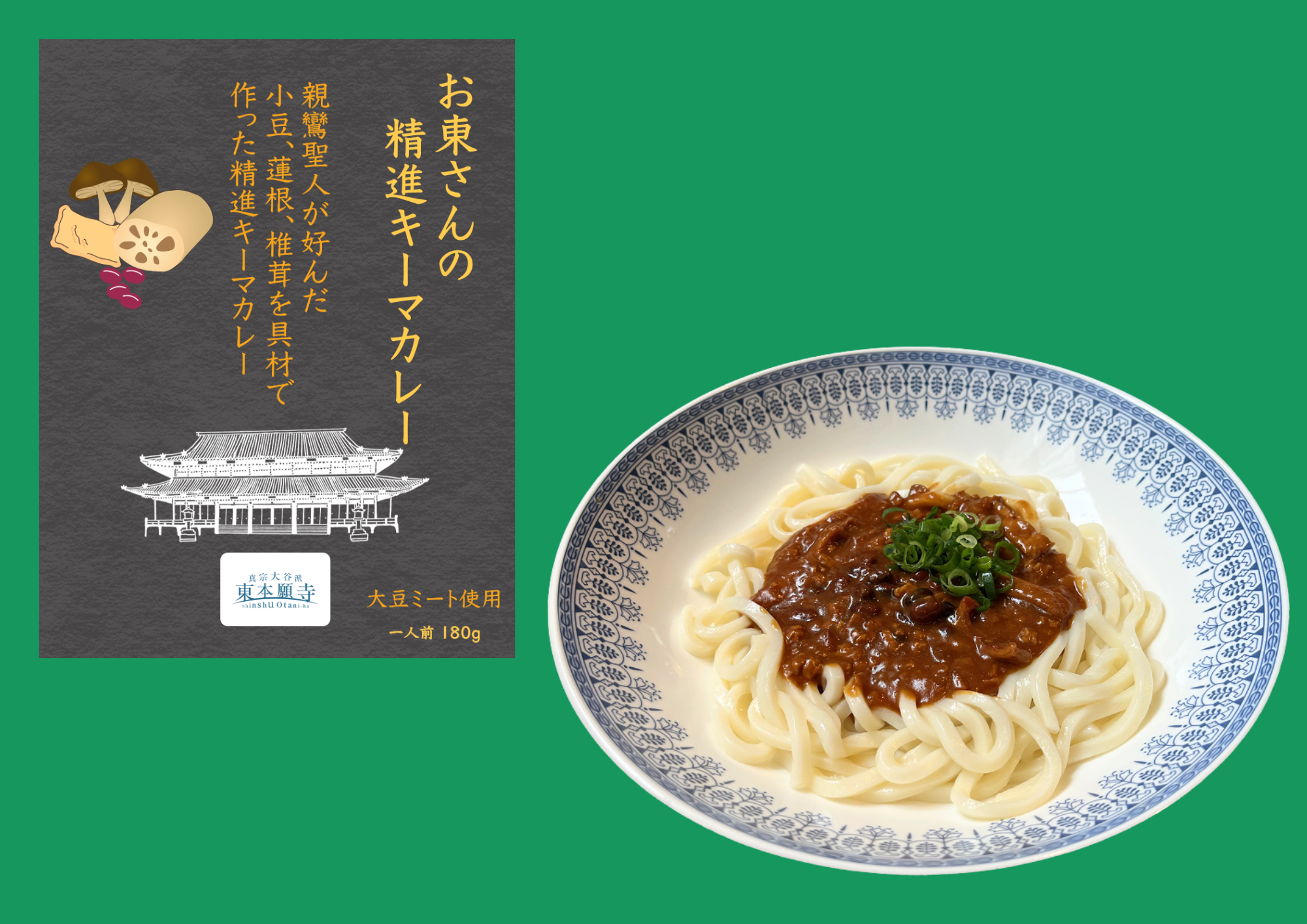 親鸞聖人が好んだ小豆、蓮根、椎茸を具材で作った精進キーマカレーです。