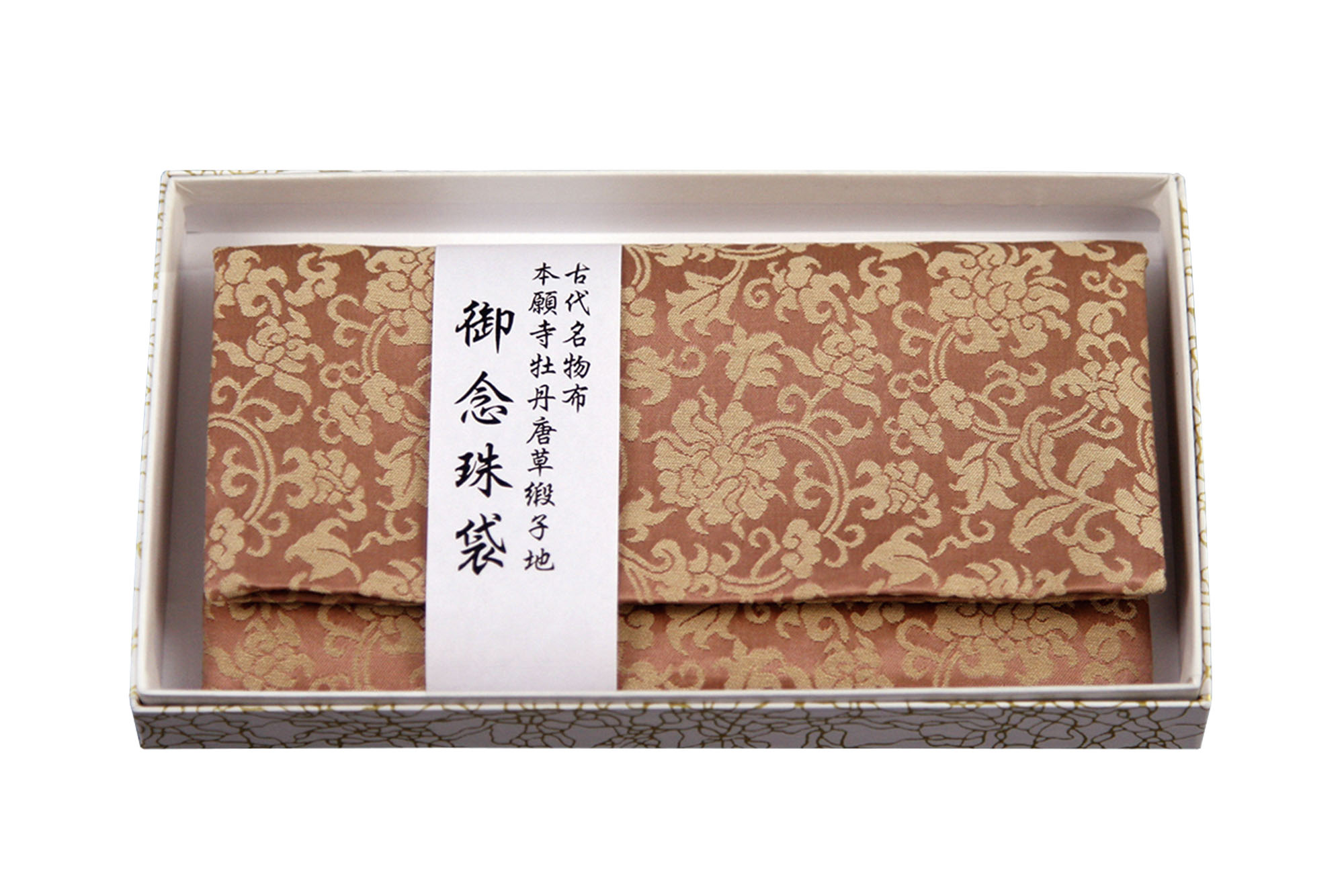 京都西陣織 薄紅蘇芳色本願寺牡丹唐草模様 御念珠袋